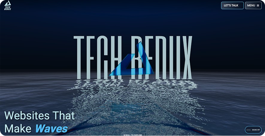 The idea was not to simulate a full ocean. The idea was to give our homepage a responsive layer that reacts to the visitor and enhances the identity of Tech Redux.